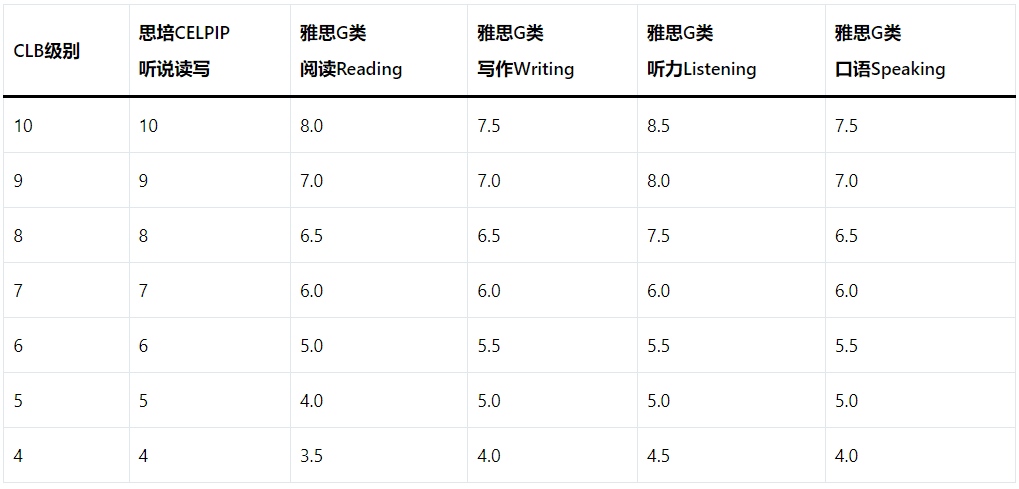 二、思培与雅思对CLB等级换算